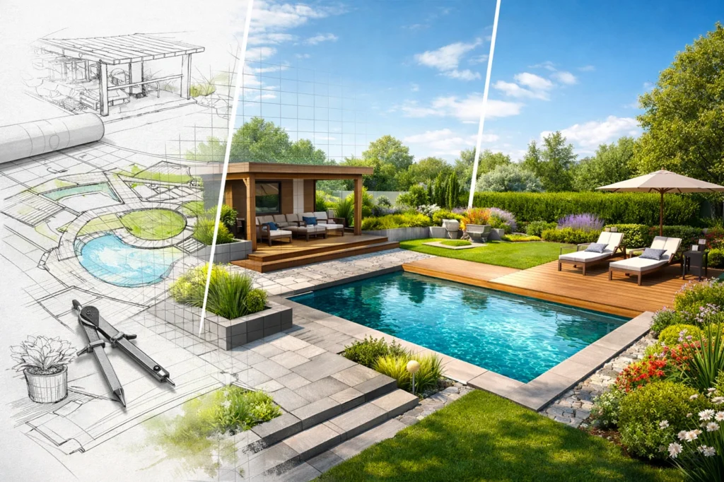 Giardini, terrazzi, parchi e piscine per contesti residenziali e aziendali.